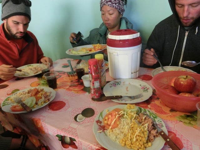 9:30頃ボリビア国境へ。ボリビア入国スタンプ後に朝ごはん。