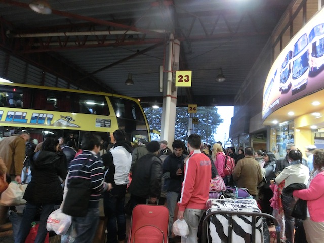 行きは早朝だったからか約1時間の超スムーズ国境越えだったのですが、戻りは14時頃のバスで大渋滞。。。ブエノスアイレス行きバスの時間が迫っていた為、国際バスを途中下車して徒歩で国境を越え、何とか間に合ったのですがそれでも2時間半くらいかかりました。。