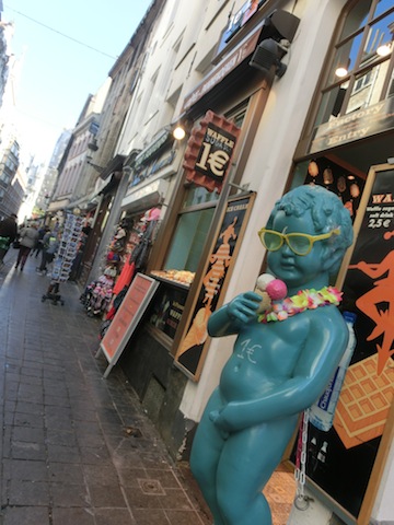 この界隈はレストランやカフェ、お土産屋、チョコレート店が沢山並びます。