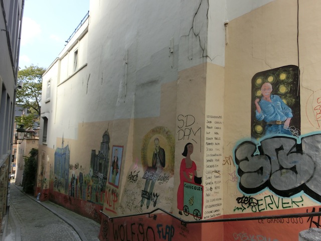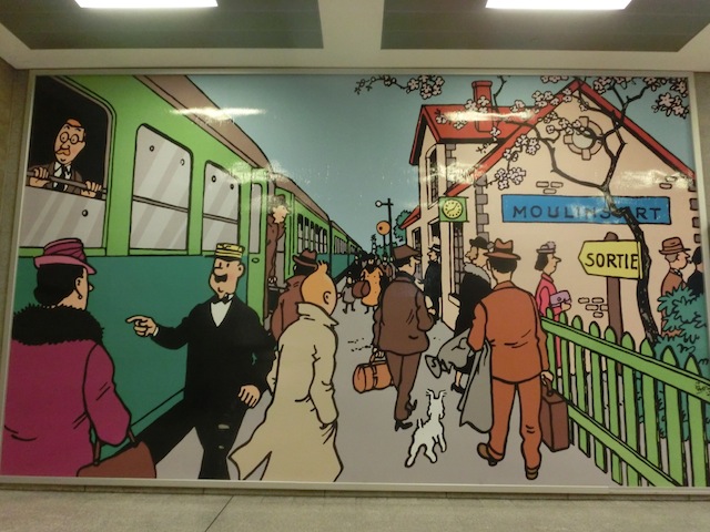 壁にタンタンが。グランパレスから小便小僧に向かう道にあります。