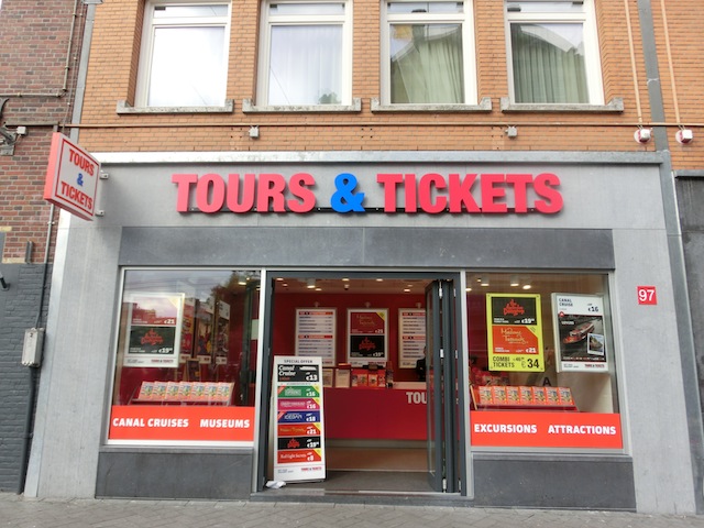 アムステルダム街中で頻繁に見かける、『TOURS&TICKETS』で申し込みができます。