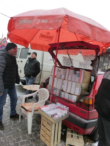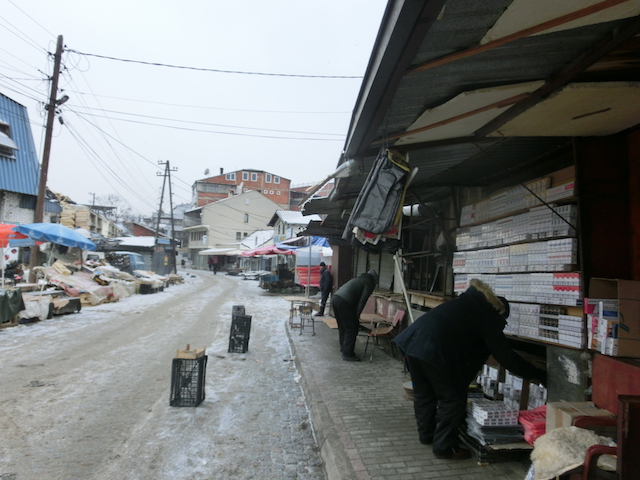 コソボのバスターミナル内のカフェにて