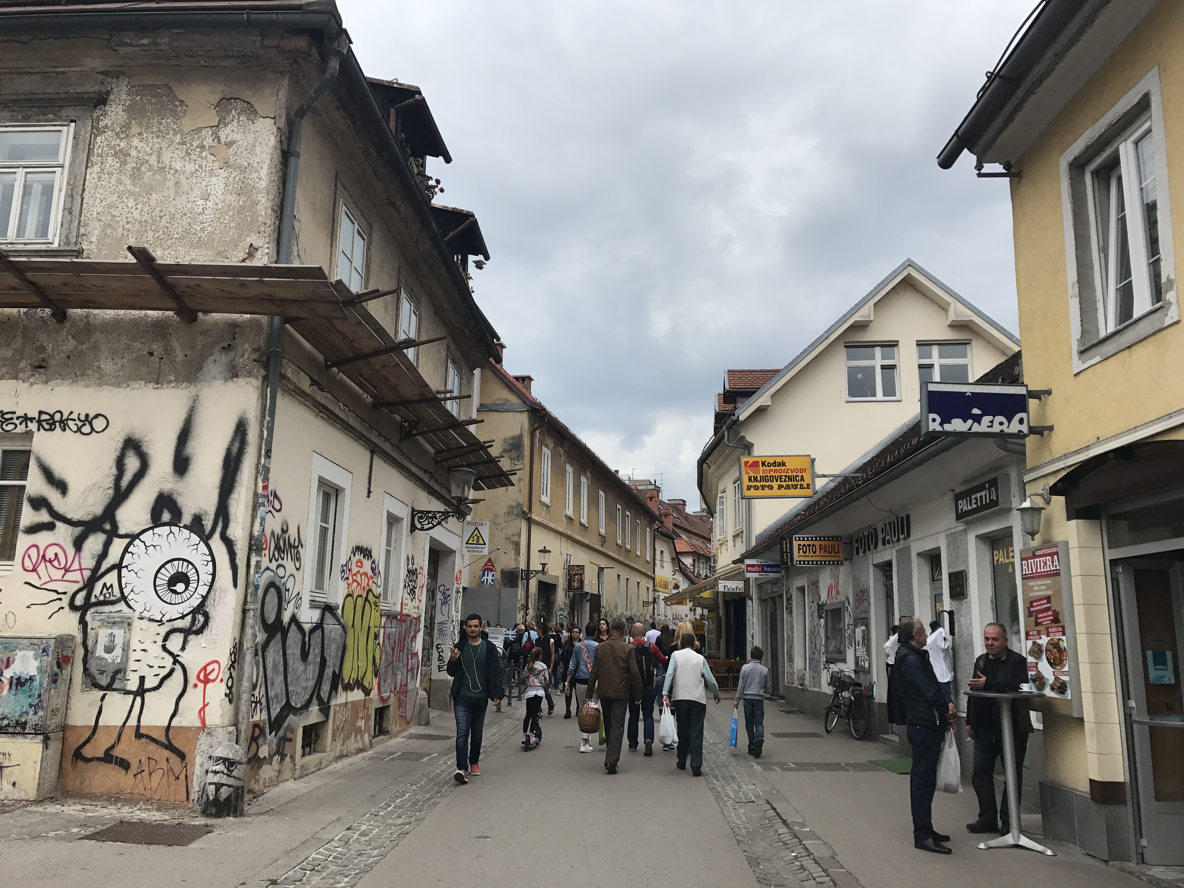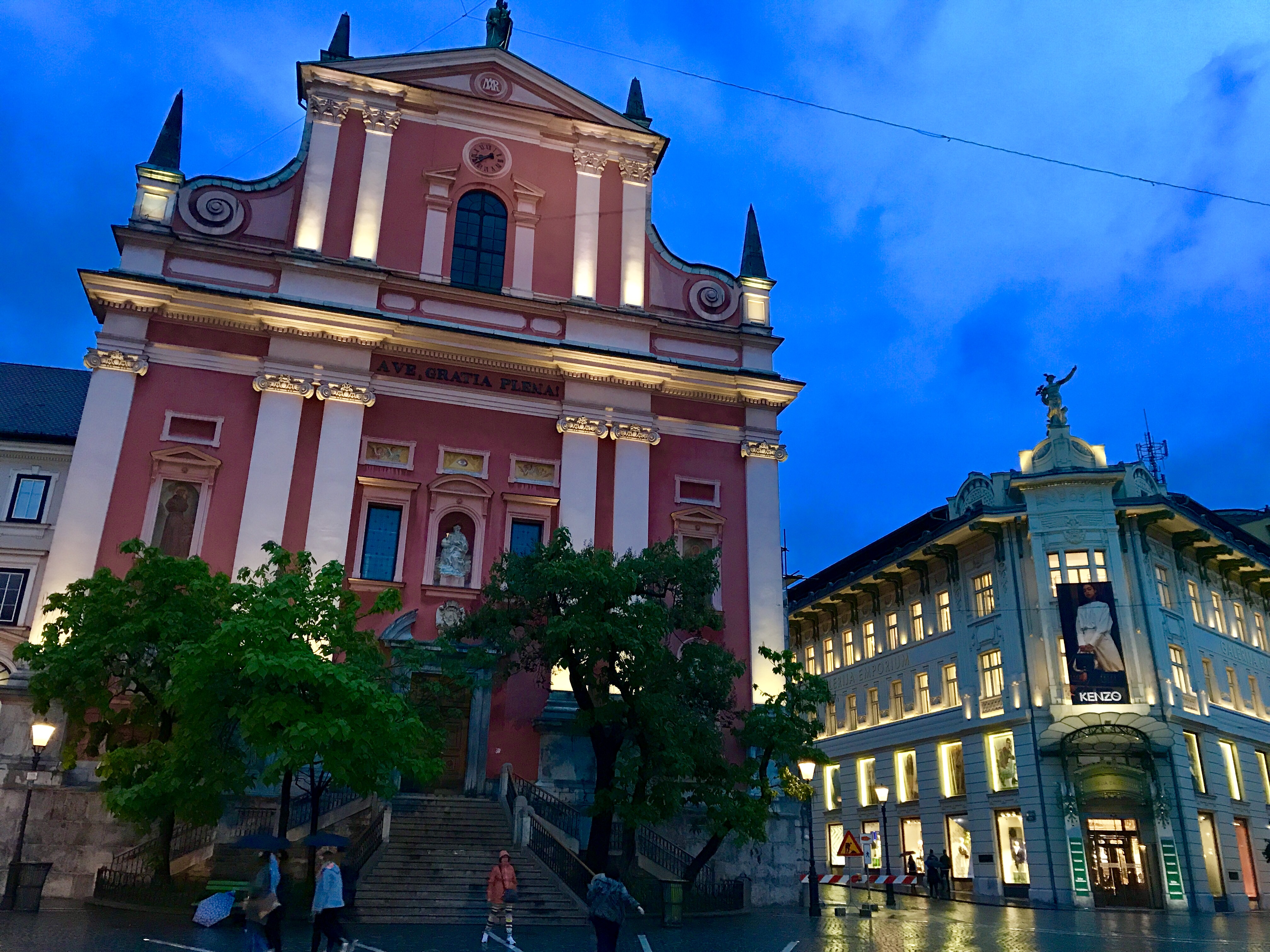 リュブリャナの中心となる広場。昼も夜も人で賑わっていました。