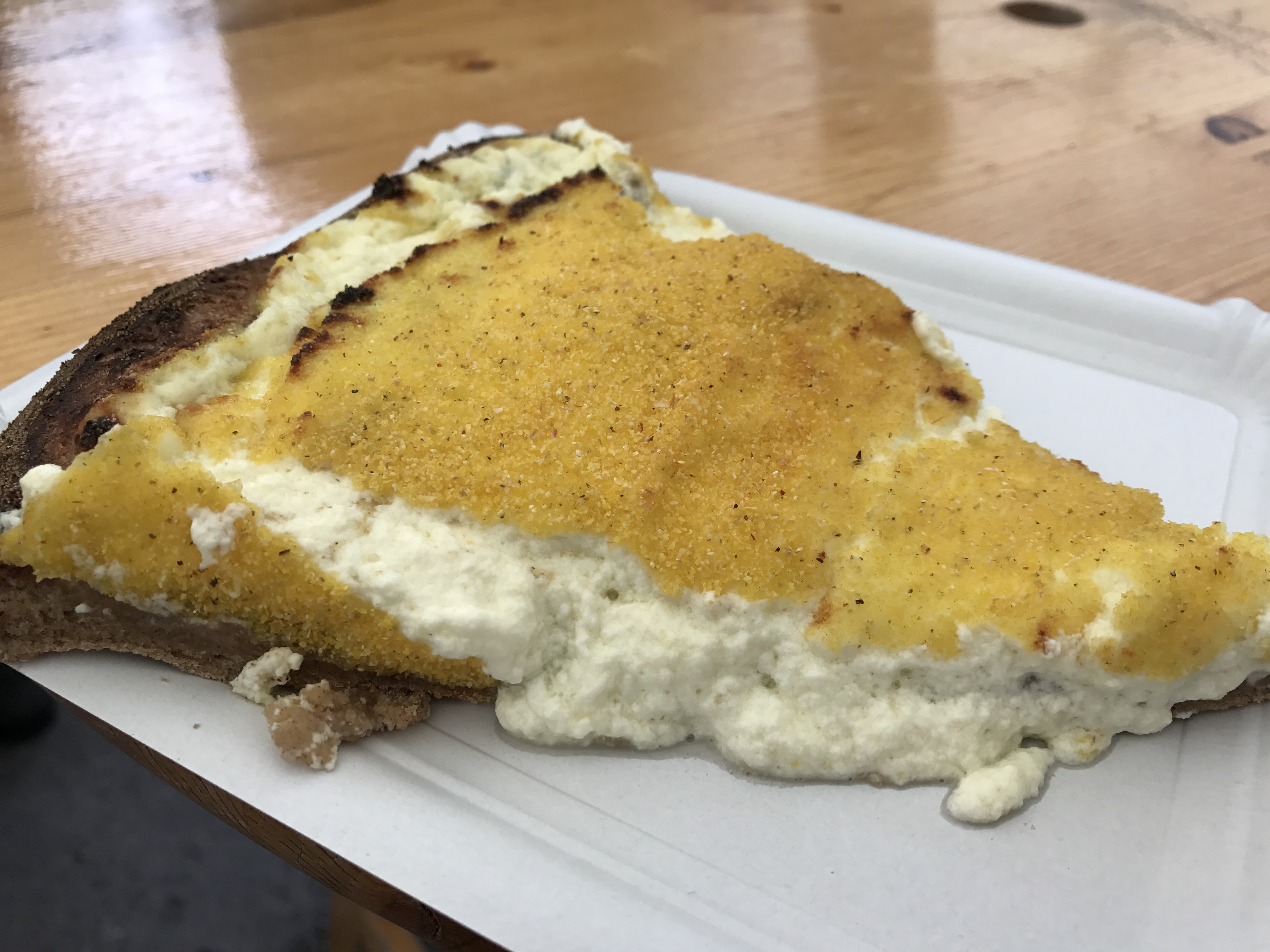 市場にあった出店にて、現地の人で混み合っていたので買ってみたカッテージチーズのピザ。美味しかったーー