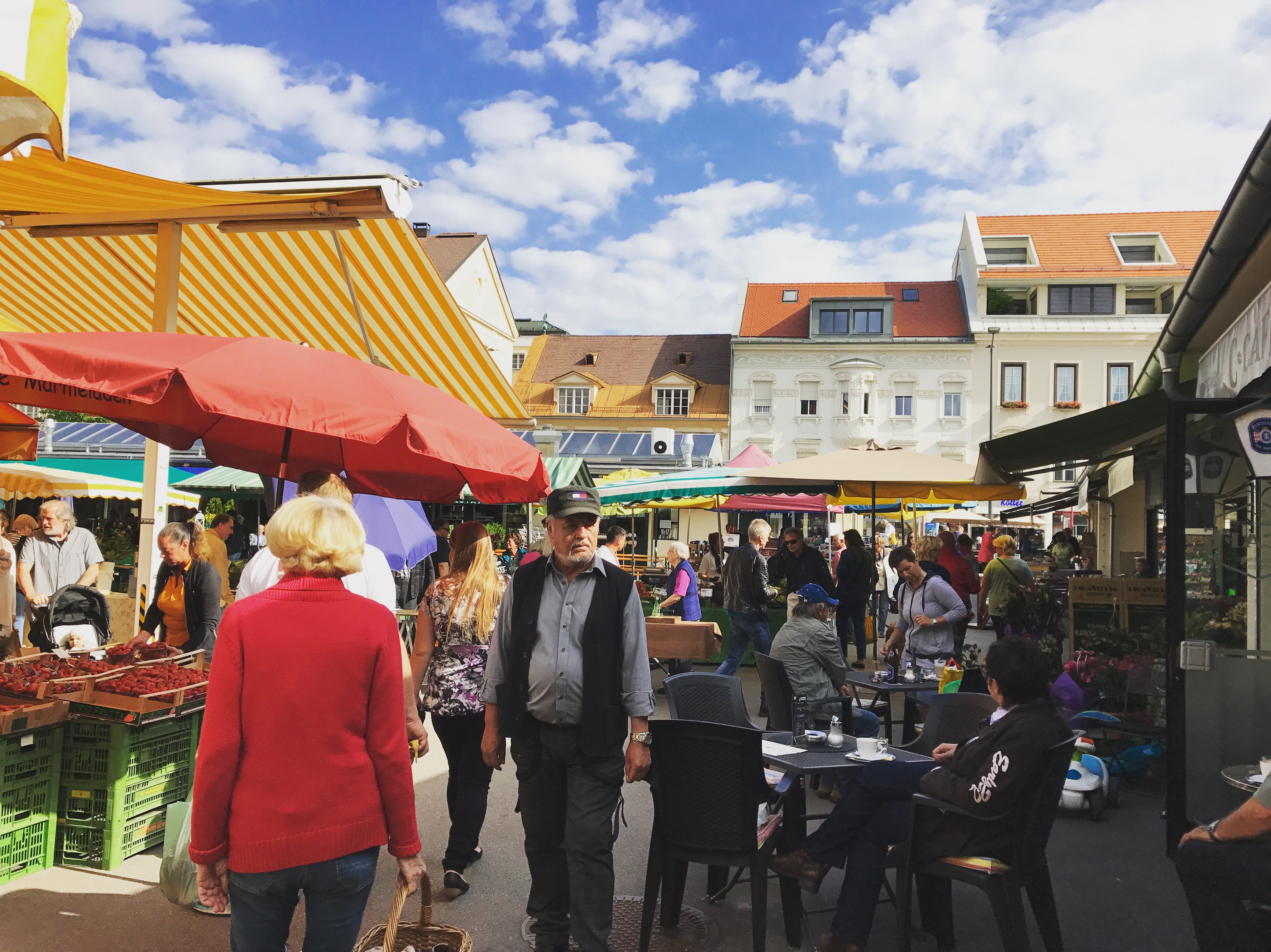 オーストリア/クラーゲンフルトは小さな街でした。人で賑わう青果市場。