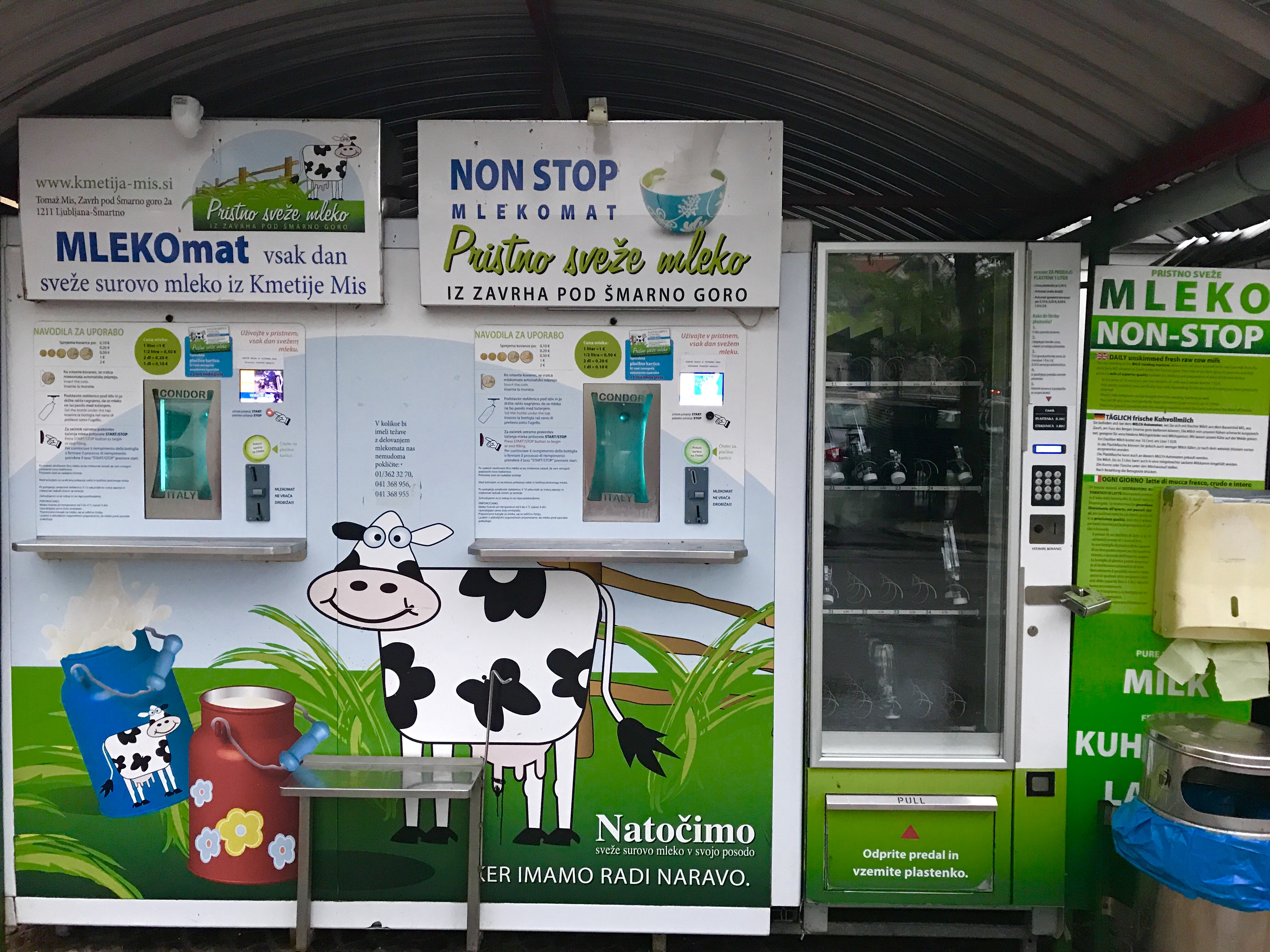 牛乳や乳製品の自販機も!