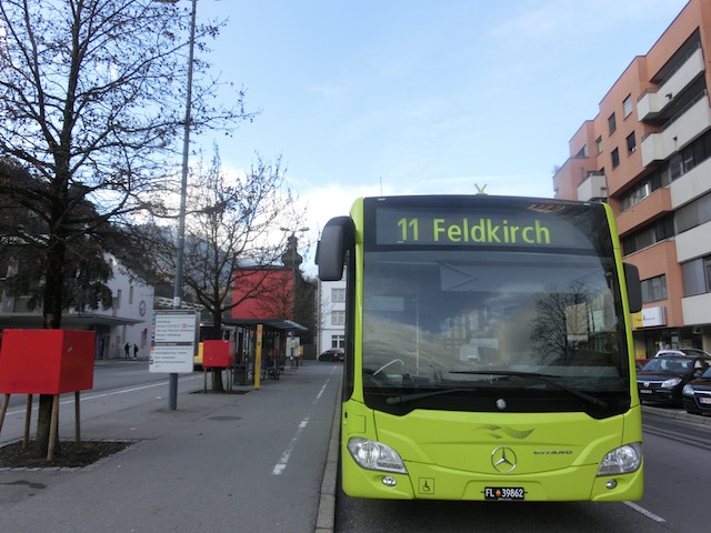 ②フェルトキルヒ駅前のバスターミナルからリヒテンシュタインバスが出ています。