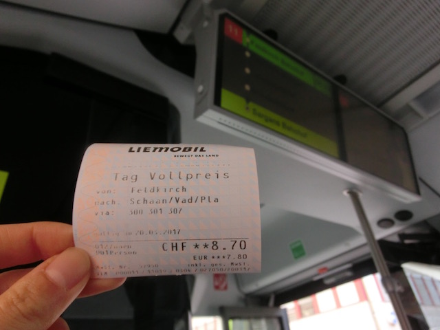 往復7.8ユーロ、8:53発→940頃リヒテンシュタイン ファドゥーツに到着