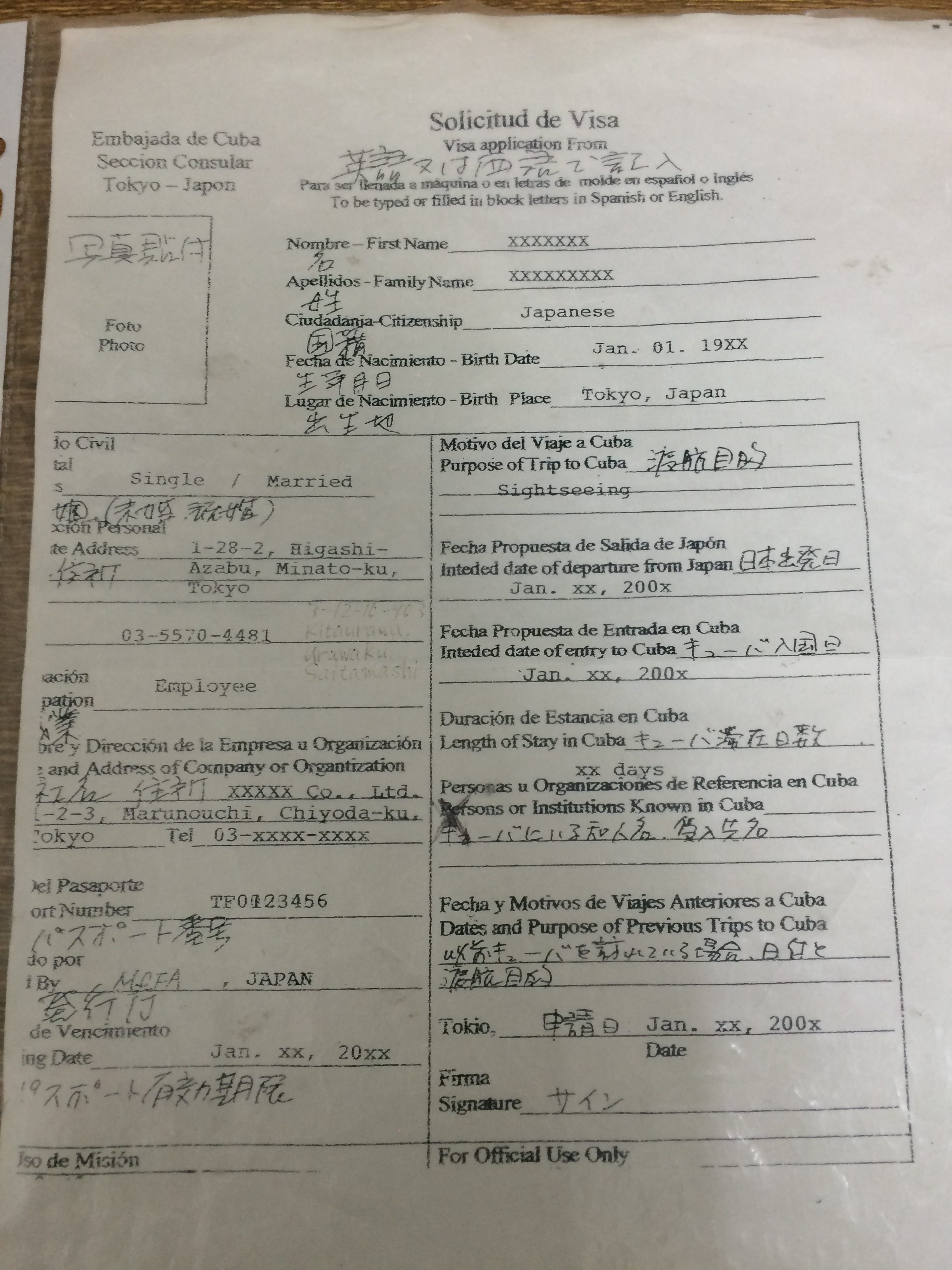 ◼︎在日キューバ共和国大使館 領事部